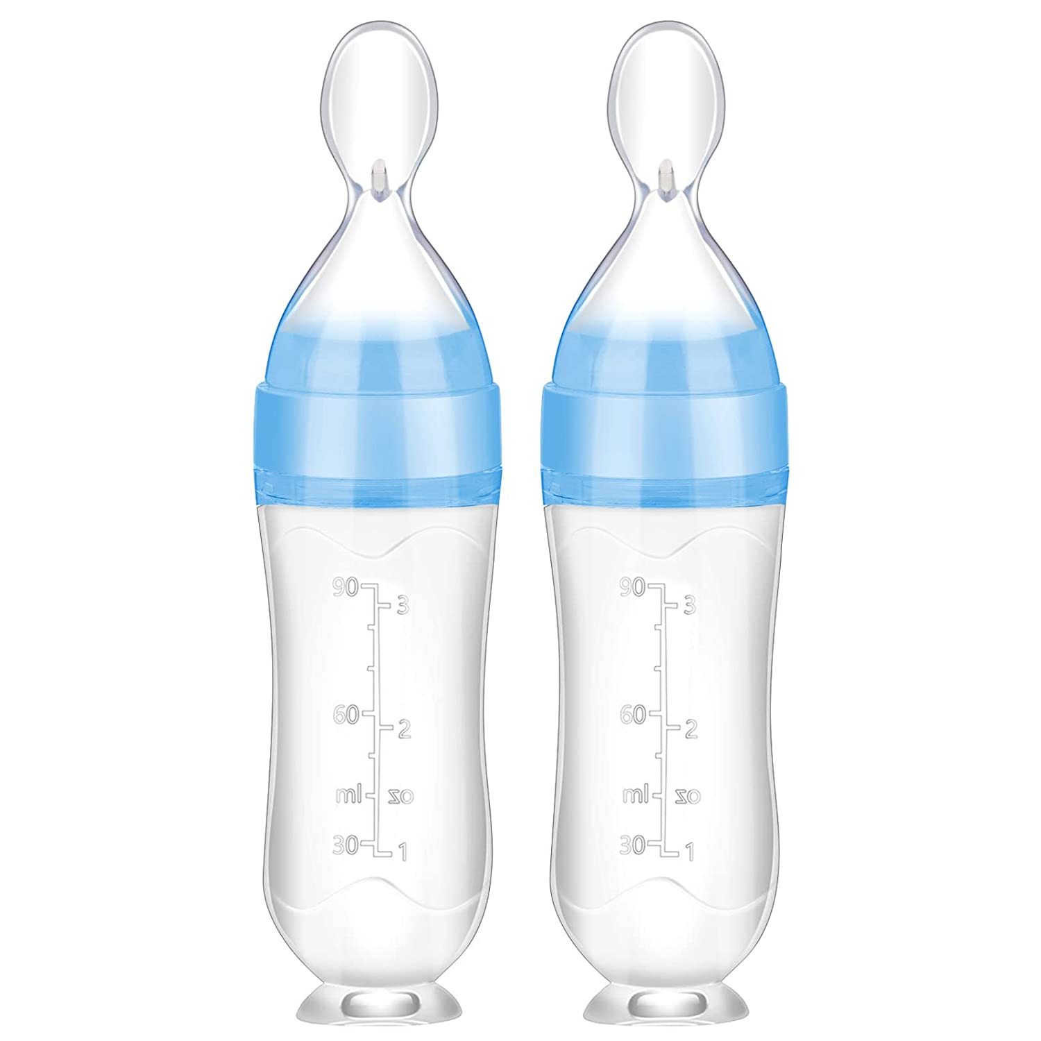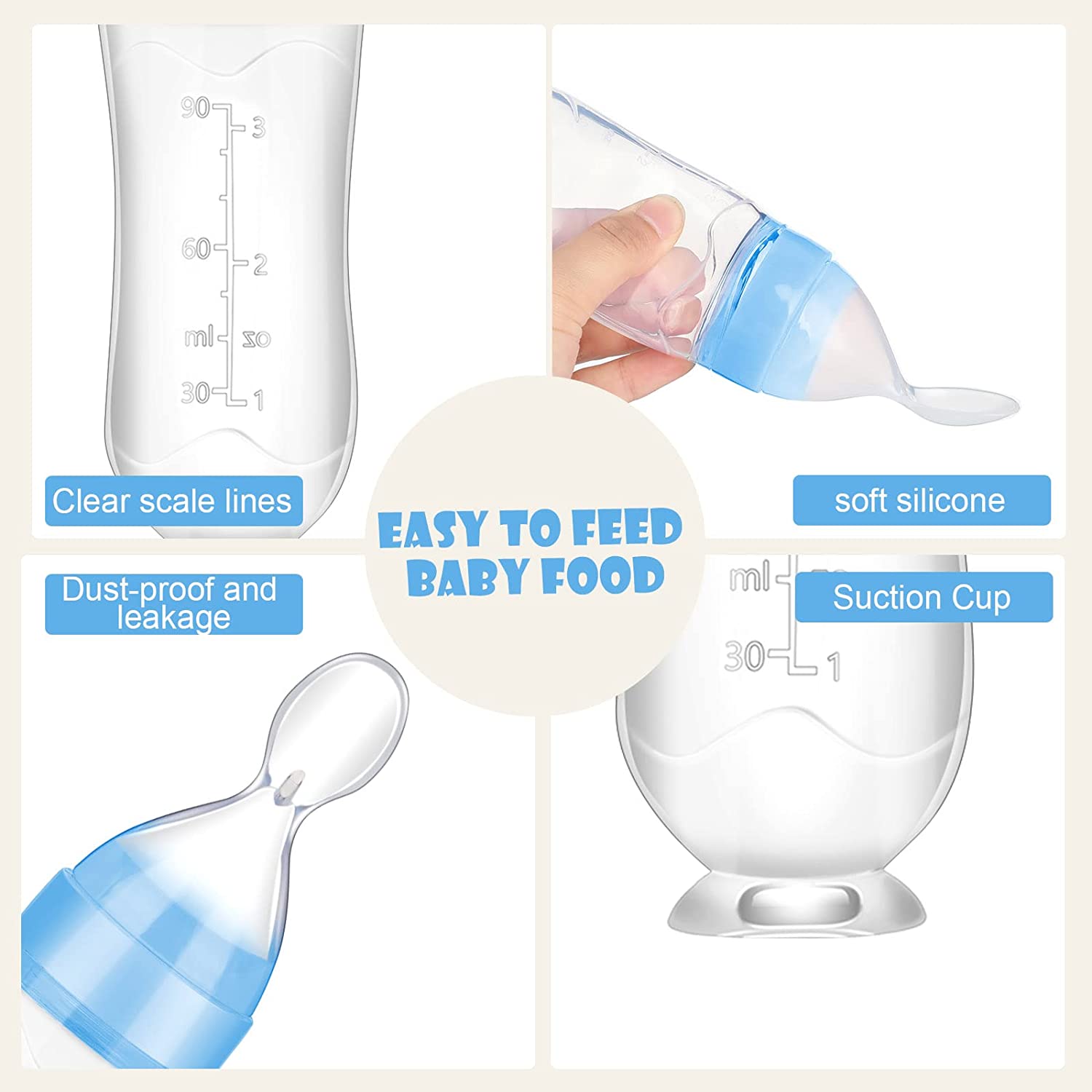 Biberón Cuchara Alimentador de Silicona Antideslizante Azul.