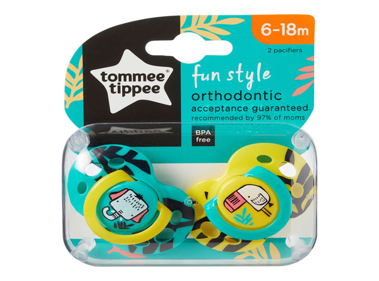 El chupón Fun Style de Tommee Tippee tiene un diseño anatómico con forma simétrica que mejora el equilibrio, haciendo que sea mas sencillo para los bebés sujetarlo con la boca, ademas ayuda al desarrollo natural bucal. tiene la misma forma que una tetina, por lo cual al bebé le resultara familiar.